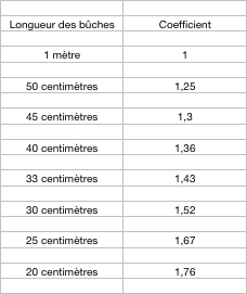 En faite cette diminution de volume est due au fait que plus les bûches sont courtes, plus le tas de bois à un volume faible puisqu'il y a moins de vide entre les bûches. Le bois se tasse.